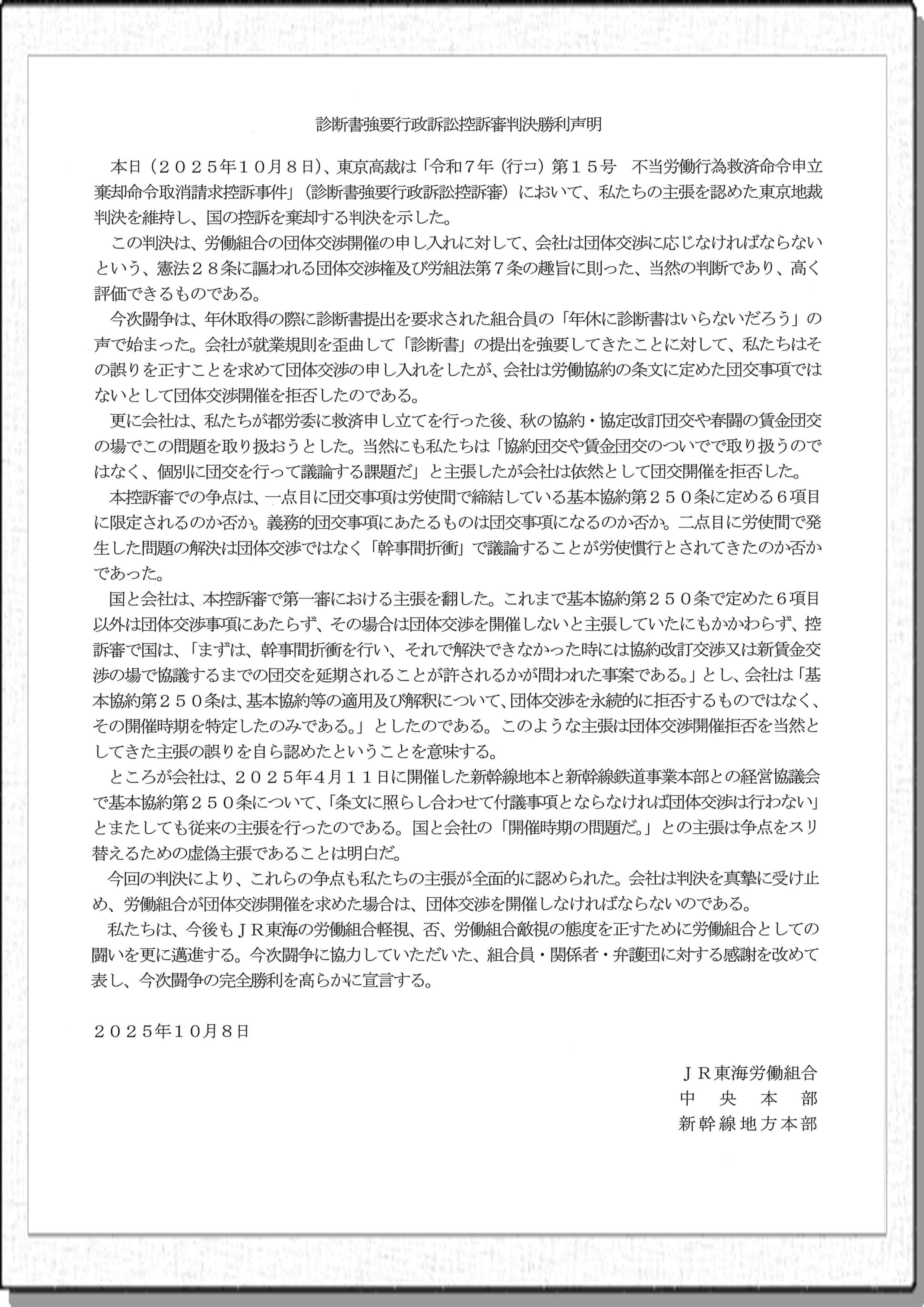 JR総連統制委員会に対するJR東海労としての見解(2)
